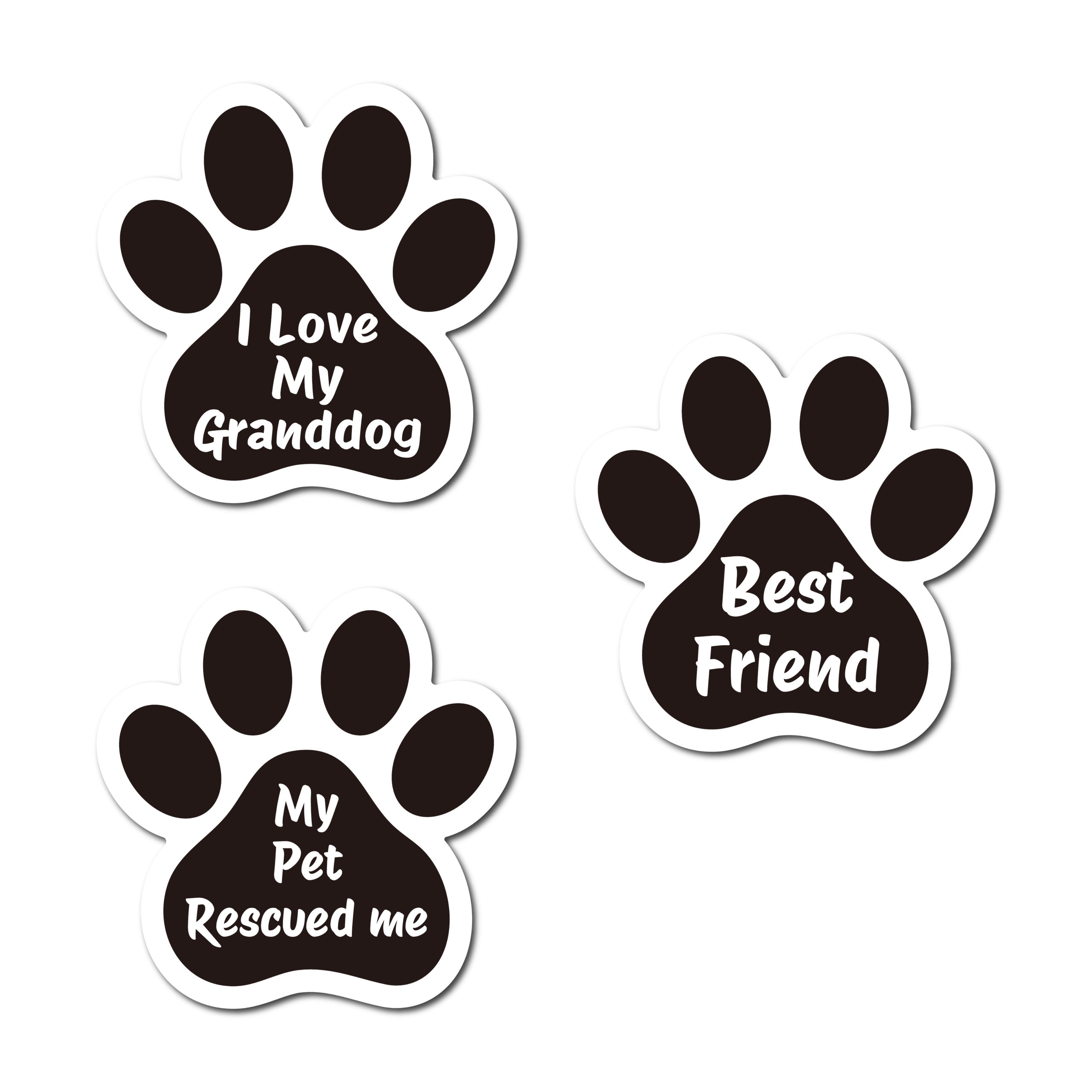 (3-Pack) Paw Print Sticker Set – Best Friend / Rescued Me / GrandDog Decals for Car, Laptop, Water Bottle – 3 Inch – 3 Pack Set (All 3 Designs)