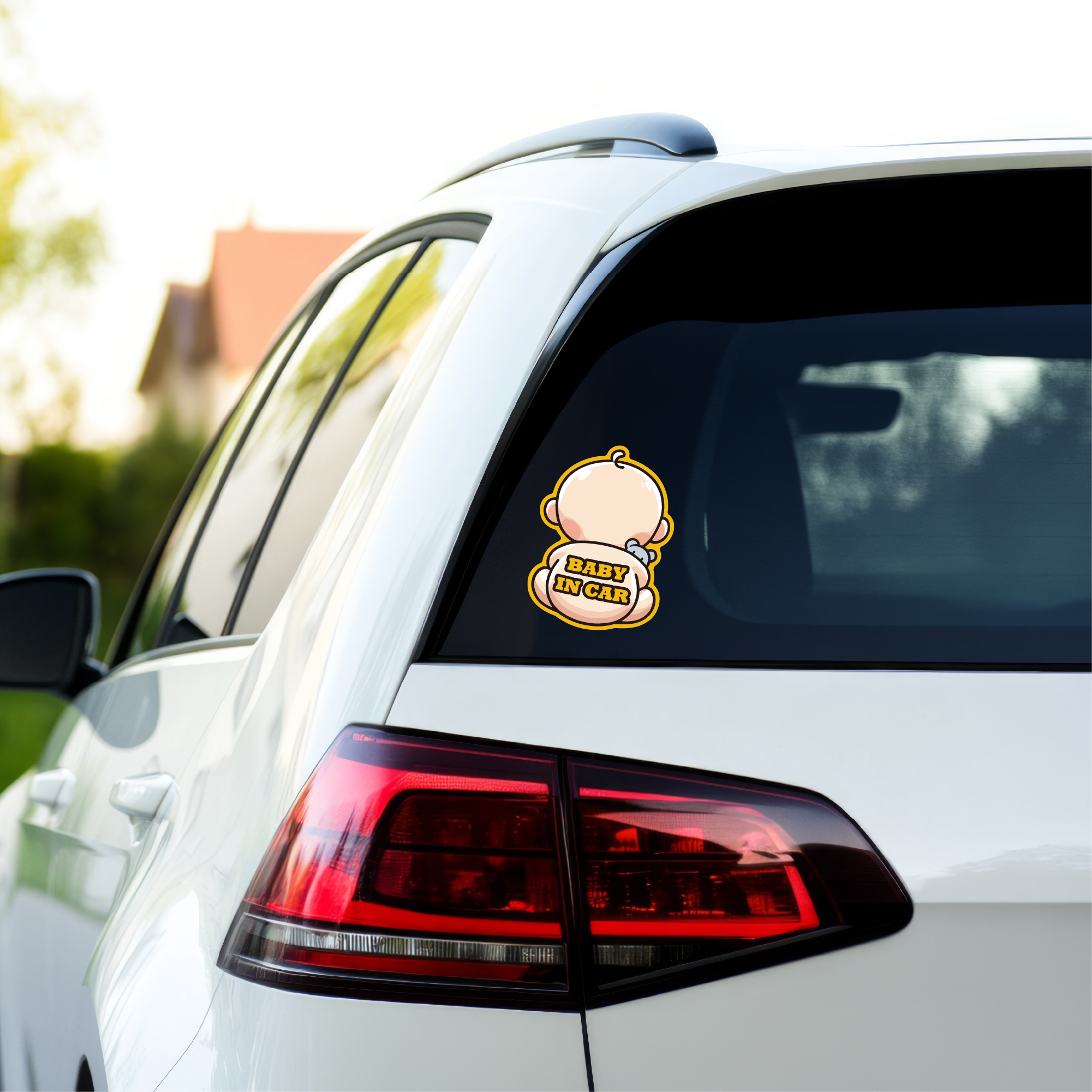 Design and visibility:Adorable baby illustration with bold BABY IN CAR text and a high-contrast yellow outline for quick recognition. Large 5.1 x 7.1 in size is easy to read on the rear of a vehicle and helps remind other drivers to keep distance. Clean die-cut shape looks great and installs in seconds with no bubbles.