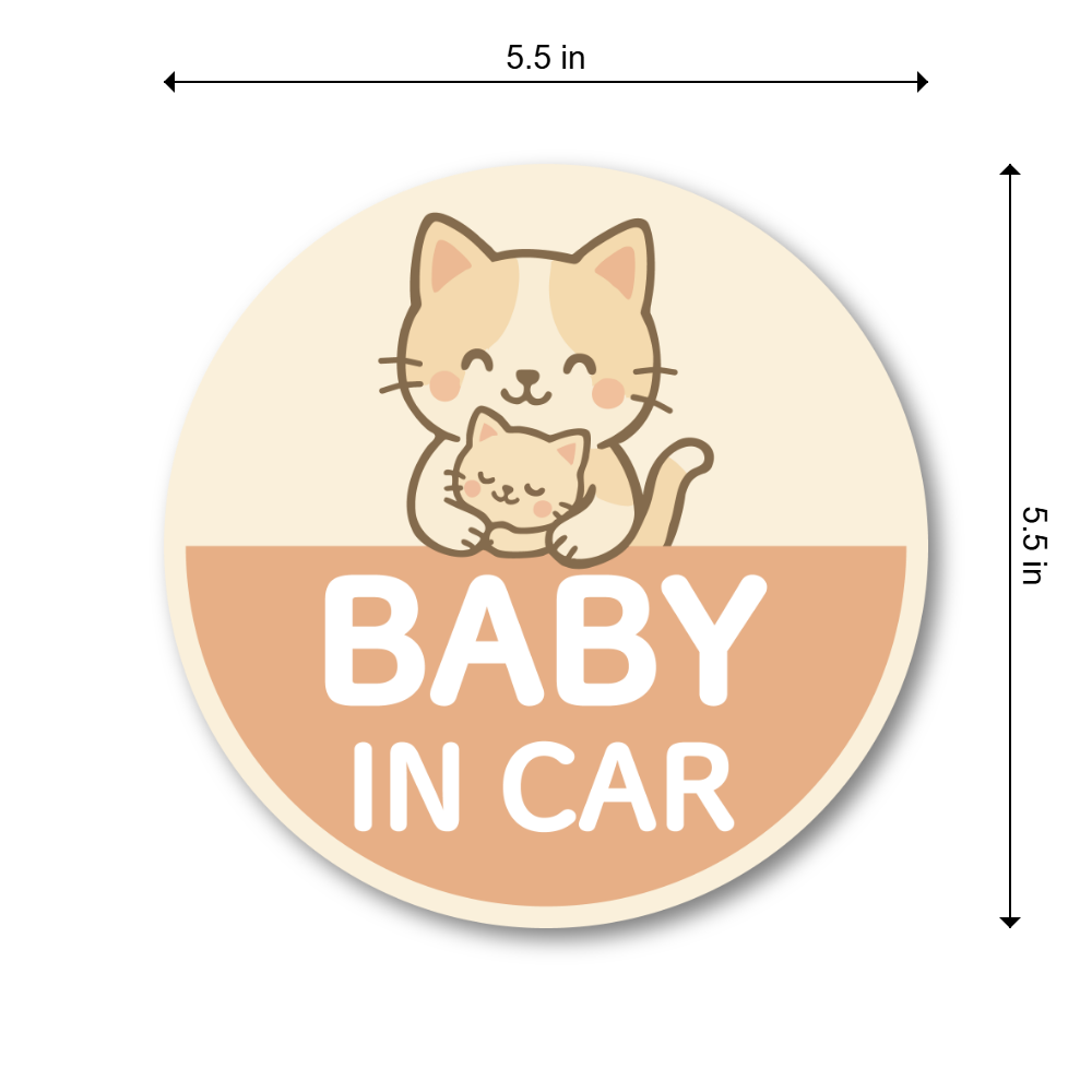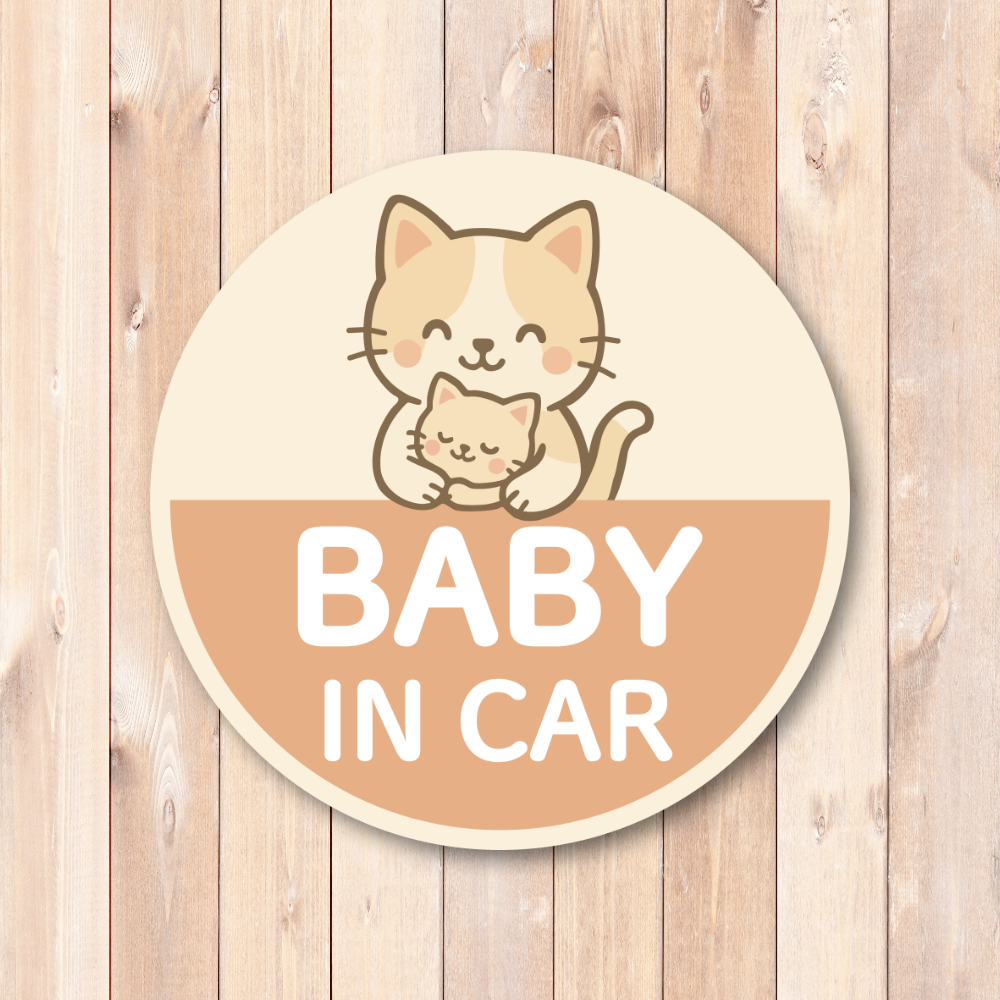 ๐ป Adorable and Gentle “Baby in Car” Magnetic Sign:This charming “Baby in Car” magnet features a cute parent bear and cat holding their babies in a warm pastel design. The soft, friendly illustration makes it a lovely way to remind other drivers that you’re traveling with a baby on board. The round, minimalist look fits perfectly on any vehicle, blending safety with adorable style.