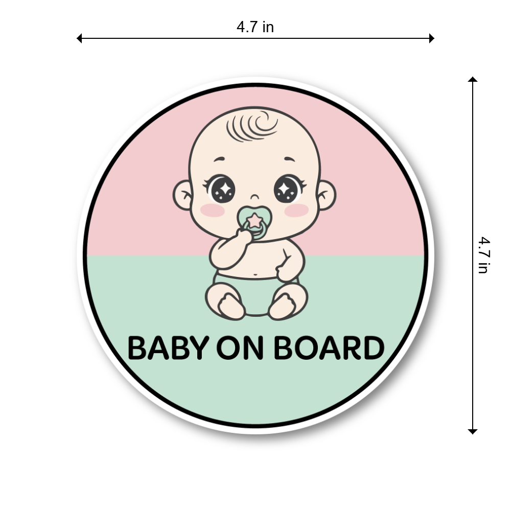 Soft Pastel Design for Clear Visibility:This Baby On Board sticker features a gentle pastel pink and mint color scheme with a cute baby illustration that helps notify drivers behind you in a friendly way. The 4.7 inch round size provides excellent visibility without overwhelming the rear window, making it ideal for everyday driving and family vehicles.