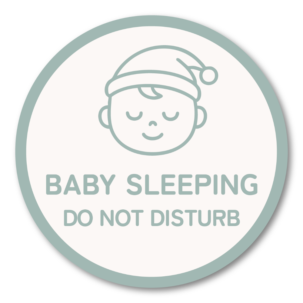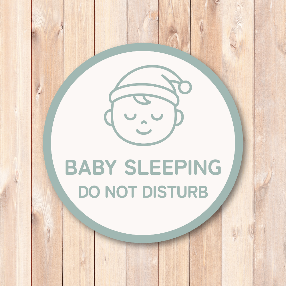 Baby Sleeping Door Sticker – 4 Inch Do Not Disturb Sign for Front Door – Waterproof Vinyl Decal for Quiet Home – Mint Gray