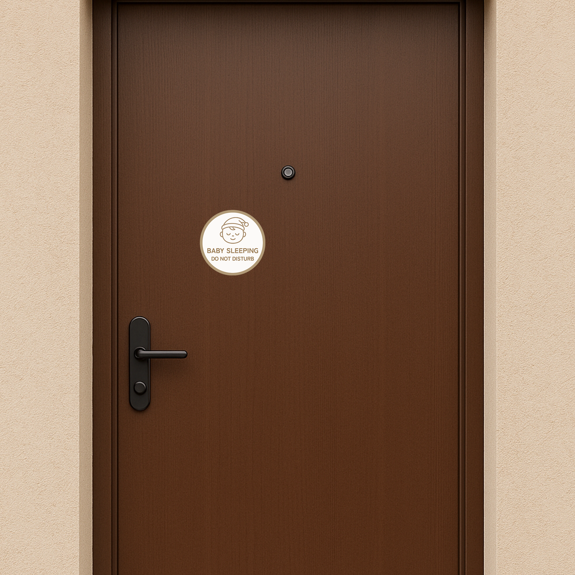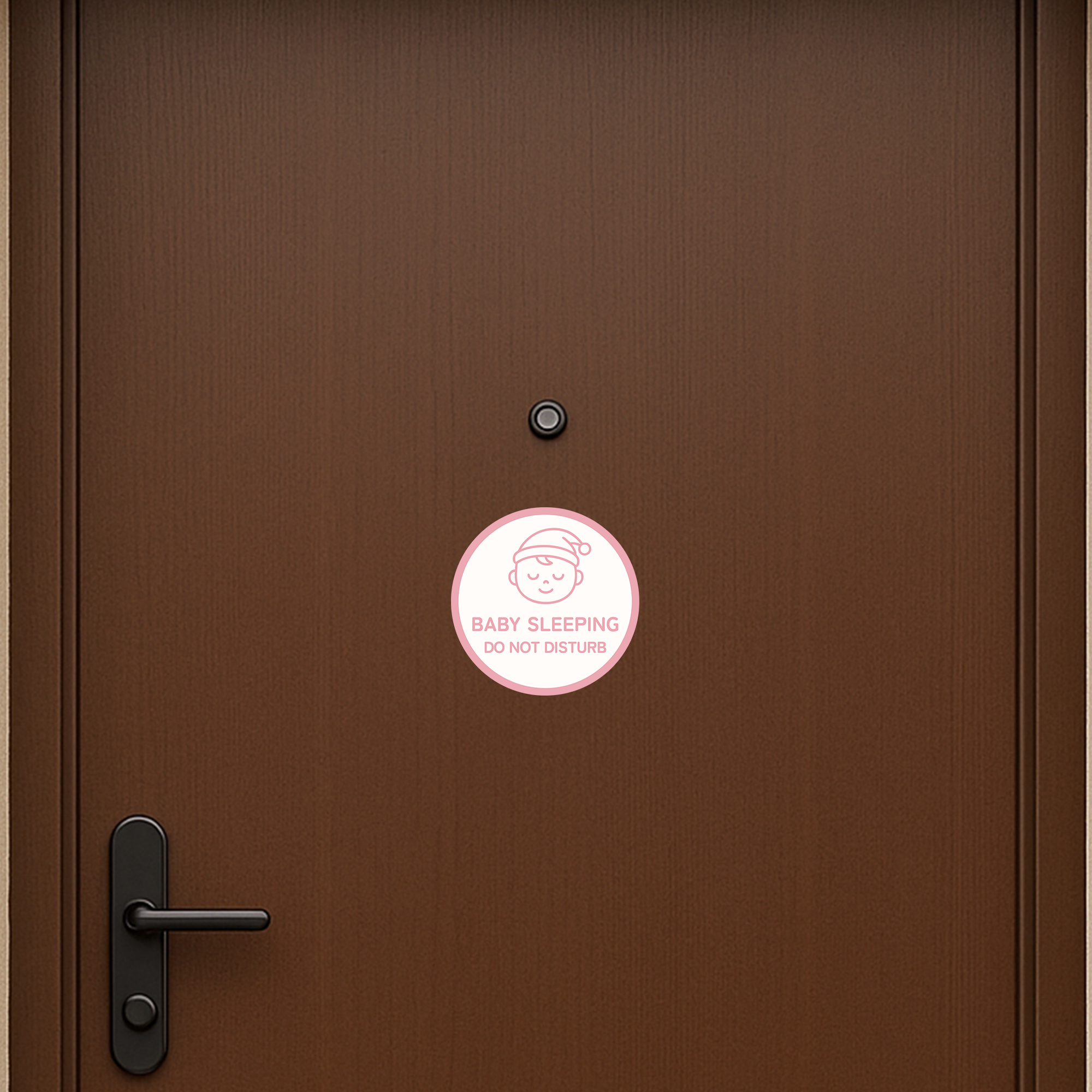 Clear 4-Inch Notice to Protect Your Babyโs Nap:This “BABY SLEEPING โ DO NOT DISTURB” door sticker provides a gentle and clear message to visitors and delivery drivers. Designed in a practical 4-inch size, it helps reduce unnecessary knocking and noise around your entrance. Made from waterproof and weather-resistant vinyl, it is suitable for front doors and outdoor placement.